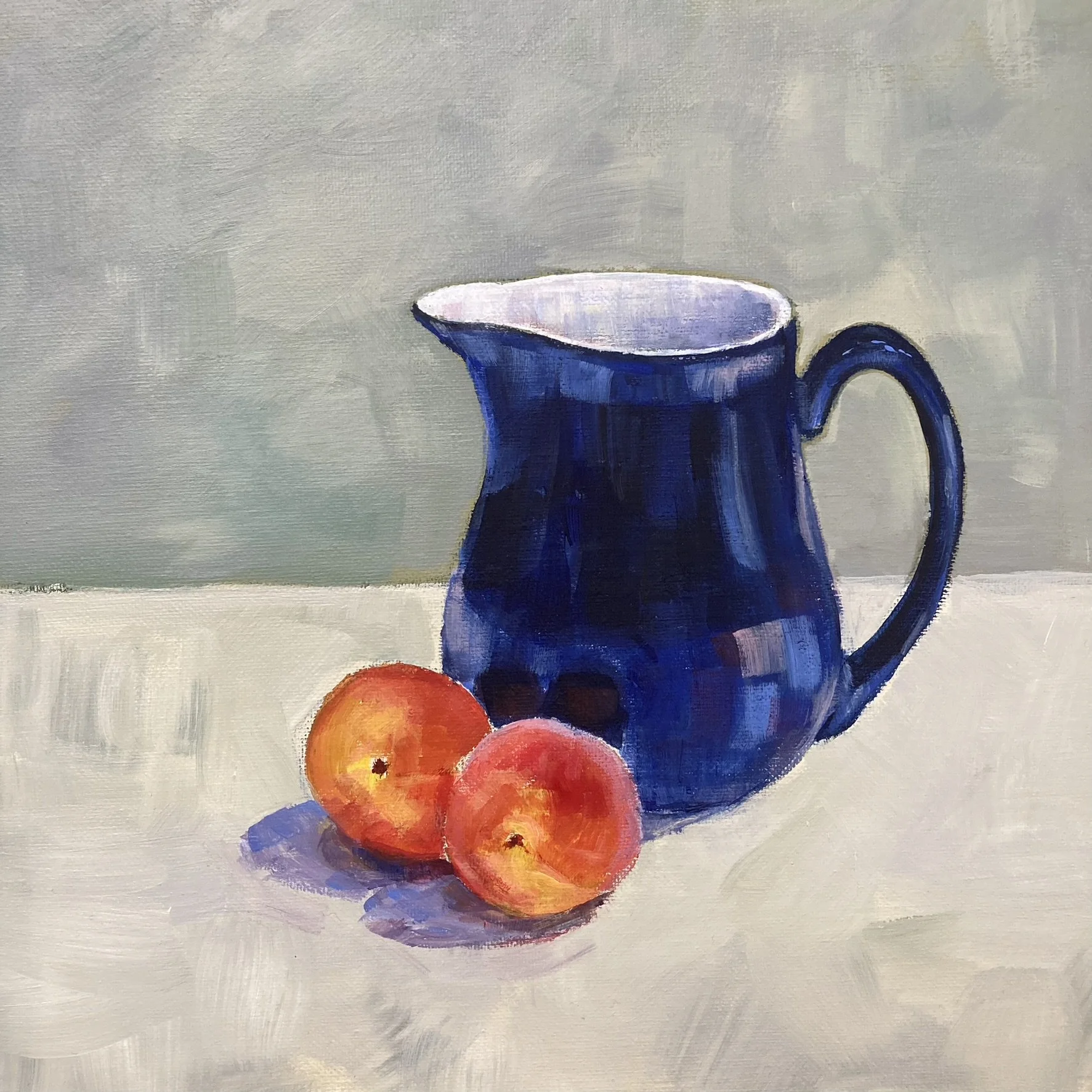 Blue Jug and Apricots Acrylics 30 x 30cm SOLD