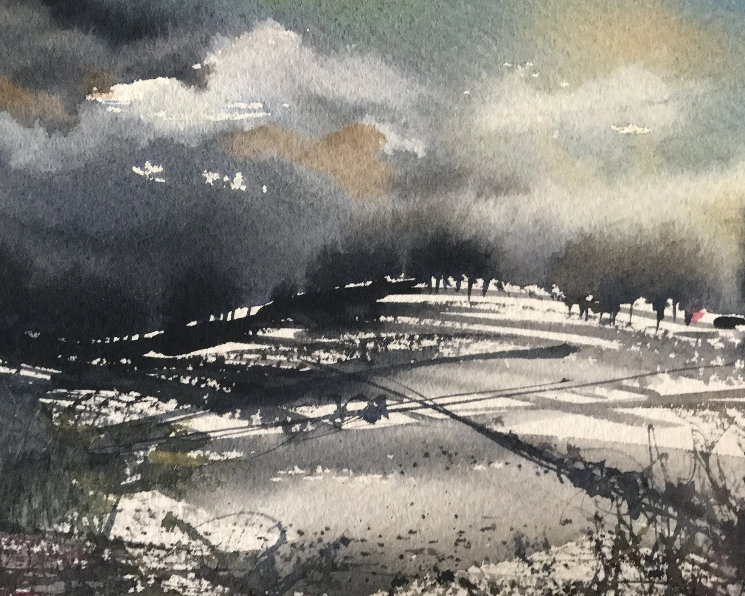 In this series I’m exploring light, atmosphere and depth. And colour! And then texture and subject reduction! And then, and then… I love putting a coloured ground (base coat) down and letting it peep through in parts. I constantly say to my students - don’t paint the Thing -just make marks based on what you see…